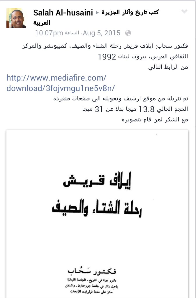 مدونة د محمد نزار الدباغ كتاب ايلاف قريش رحلة الشتاء والصيف فكتور سحاب عن صفحة كتب تاريخ واثار الجزيرة بمشاركة الاستاذ صلاح الحسيني على الفيس بوك