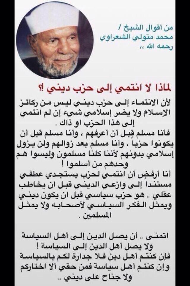 Deryam Auf Twitter العلامة محمد متولي الشعراوي رحمه الله لماذا لا انتمي الى حزب ديني مصر ليبيا Http T Co Xfoxps0c2x