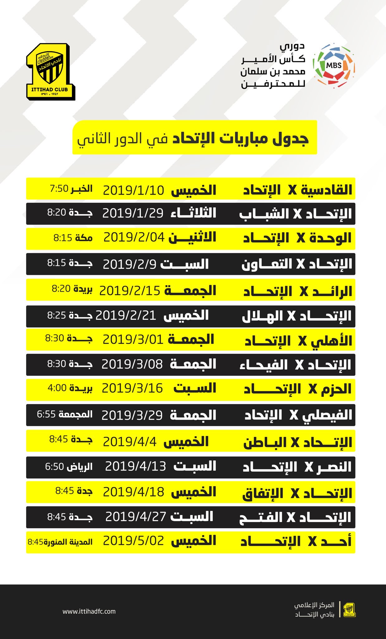 نادي الاتحاد السعودي Twitterren جدول مباريات الفريق الكروي في الدور الثاني من مسابقة دوري كأس الأمير محمد بن سلمان للمحترفين الاتحاد