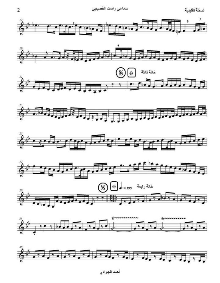 نوتة سماعي راست القصبجي من تدوين أحمد الجوادي